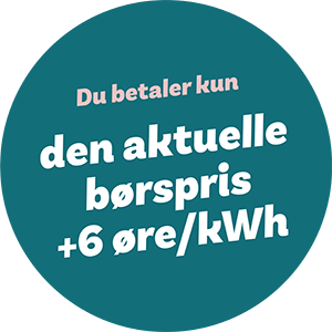 Du betaler kun den aktuelle børspris for strømmen + 6 øre/kWh (som er betalingen for håndtering af vores aftale).